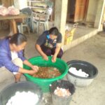 Früh morgens ging es los mit den restlichen Einkäufen, dem Säubern des neuen Carports, unter dem die Feier stattfinden sollte, und dem Kochen des Reises. Als nächstes wurden die Beilagen geschnippelt, die Grillplätze vorbereitet und das Fleisch mariniert werden. Zudem mussten 300 (!) Eier gekocht, Süßigkeiten verpackt und die finale Deko angebracht werden.