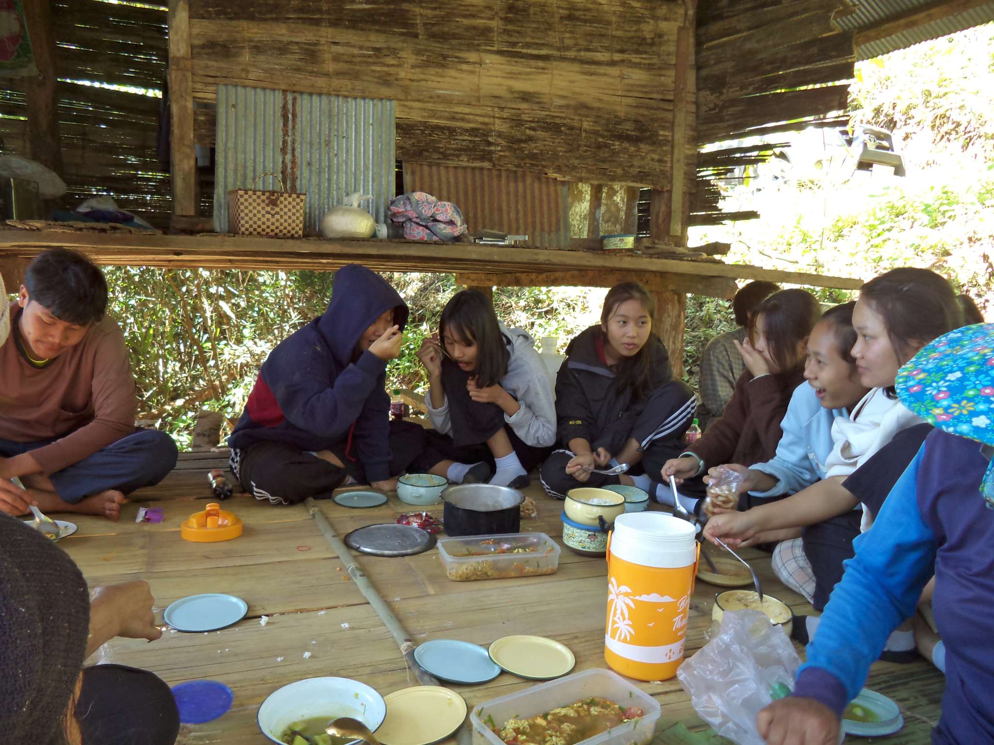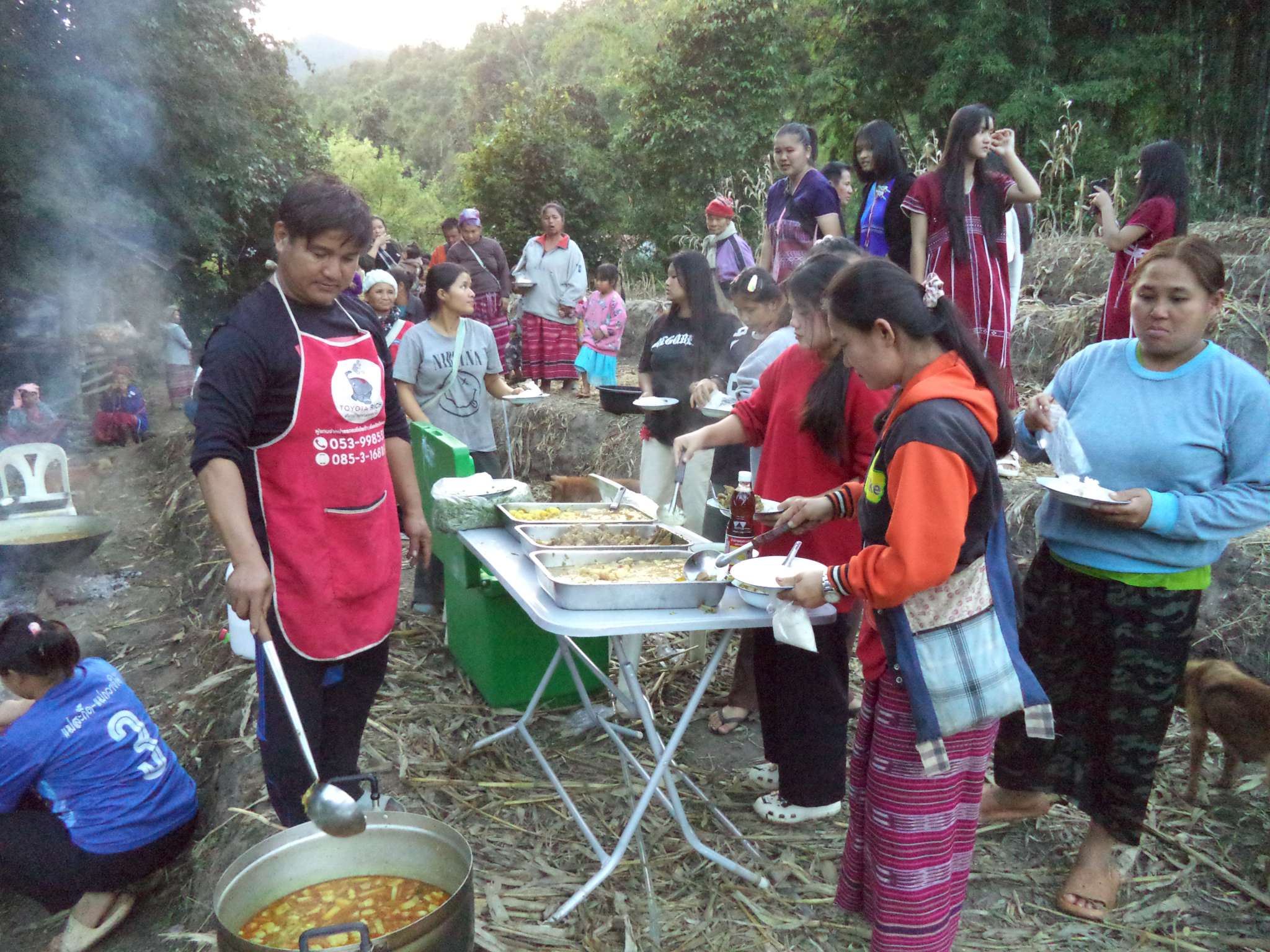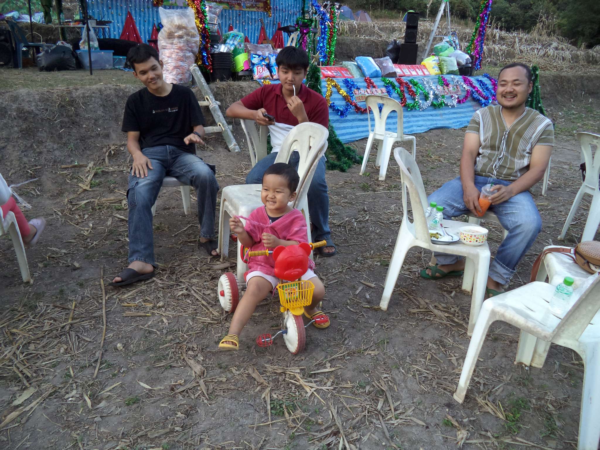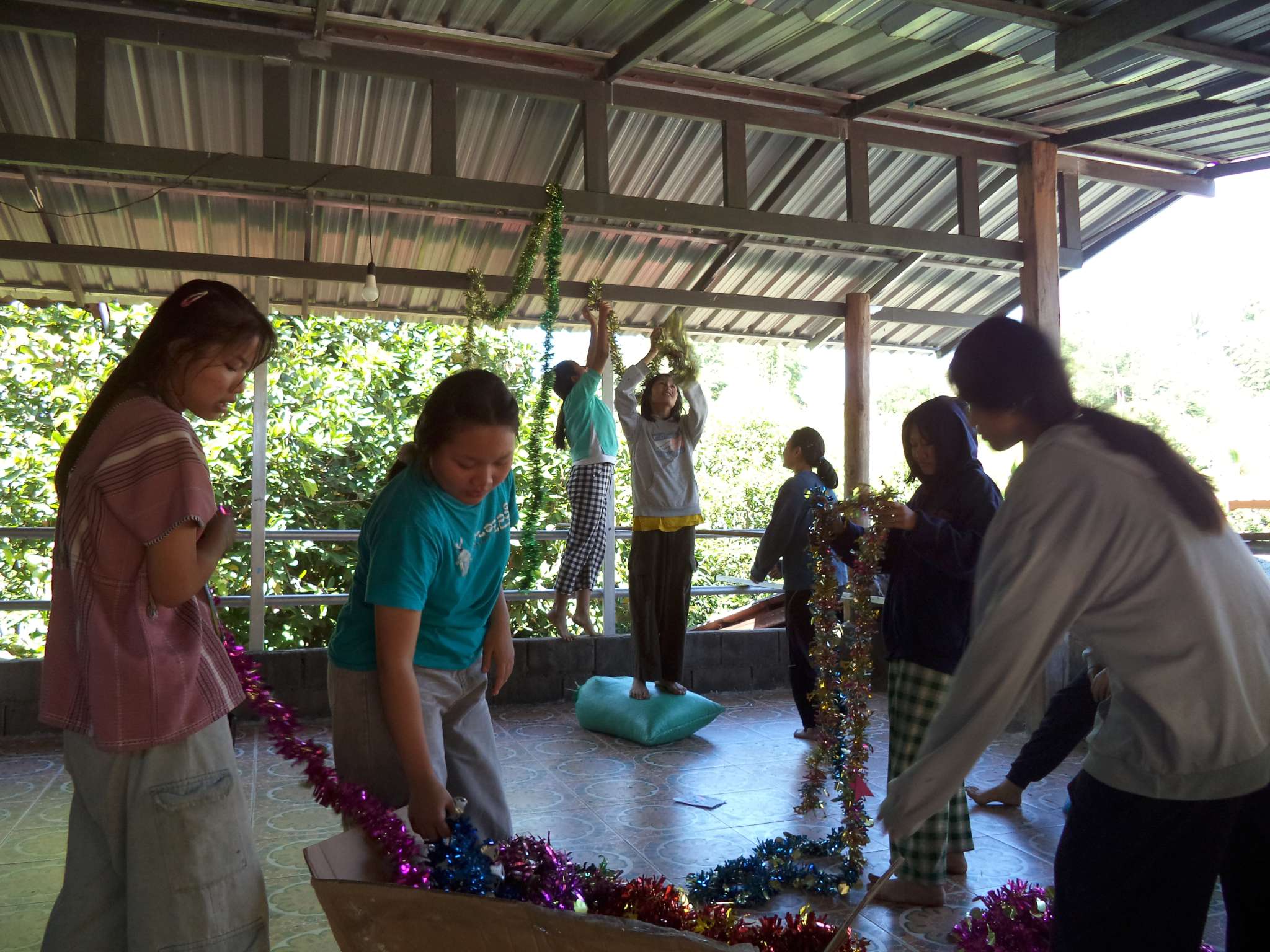 Am 25.12. kamen neben den Gästen auch viele Helfer, vor allem aus der lokalen Kirchengemeinde, die Prapan, Mietda und die Kinder jeden Sonntag besuchen. Von dort konnte auch einiges an Equipment (Tontechnik, Stühle etc.) und Dekoration (z.B. Vorhänge der Bühnendeko) geliehen werden.