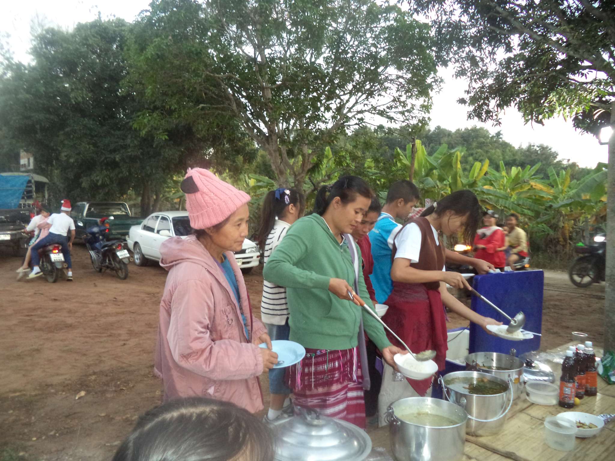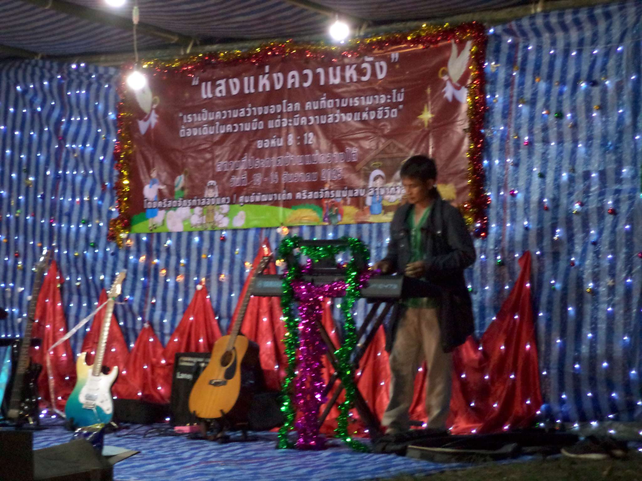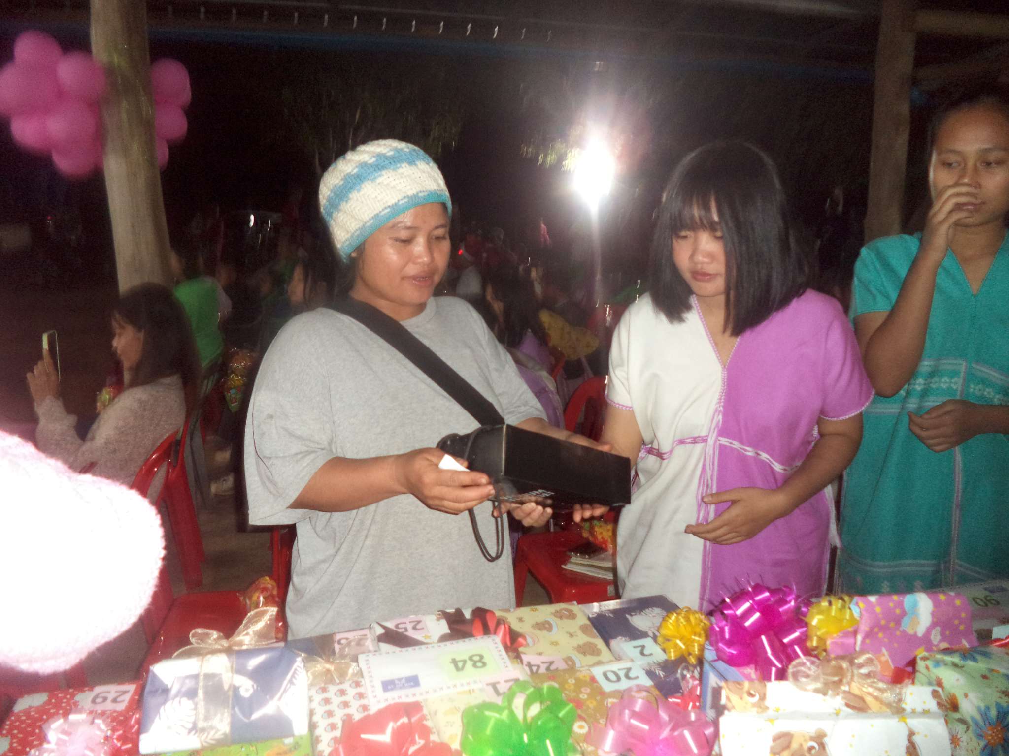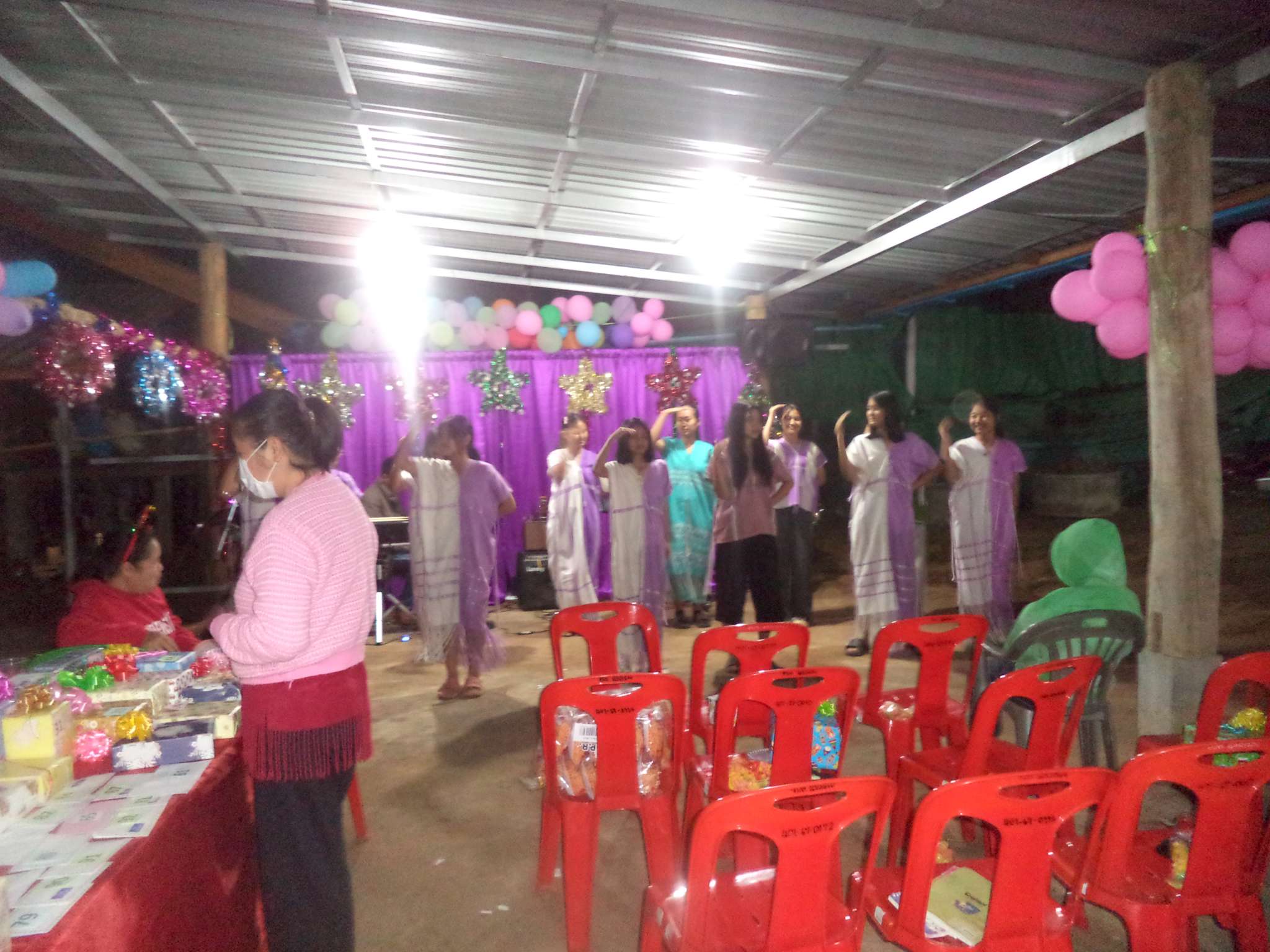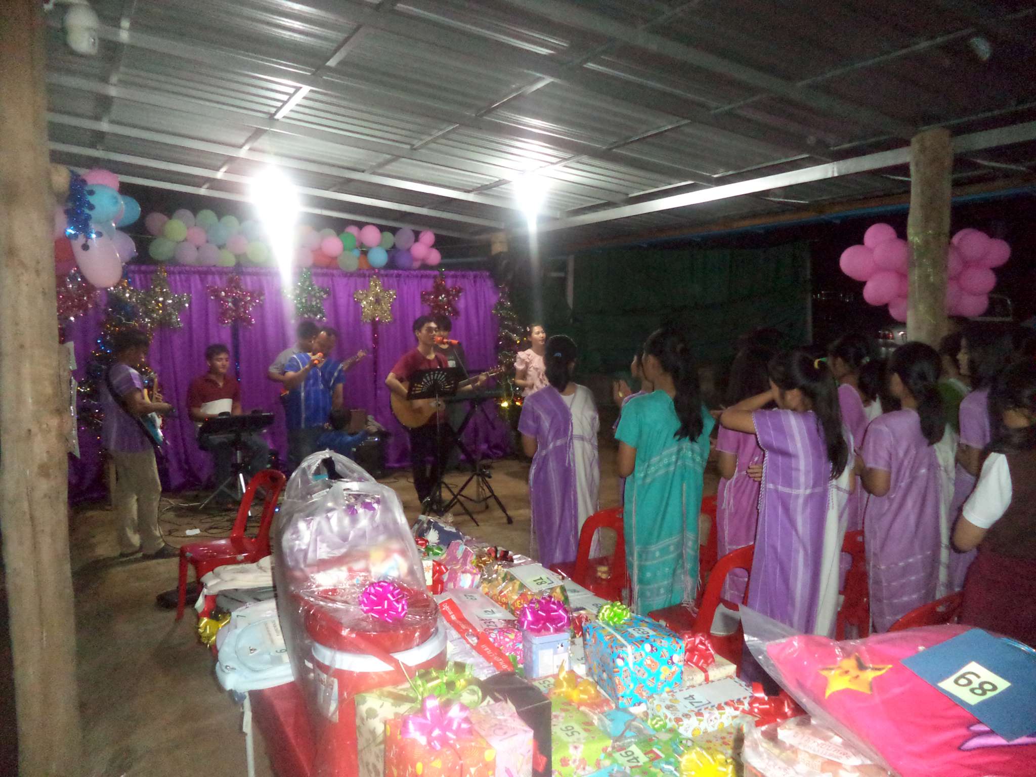 Um 18:30 Uhr begann der Weihnachtsgottesdienst mit Beiträgen der Band aus der lokalen Kirchengemeinde (bei der Prapan E-Gitarre spielt), der Kinder aus Ta Pa Bum sowie vielen weiteren Personen. Danach hielt der Pastor eine Predigt über die Weihnachtsgeschichte aus der Bibel und im Anschluss fand das große Wichteln statt, bei dem jeder eine Nummer zog, und dann das entsprechend nummerierte Geschenk erhielt. Zum Ausklingen des Abends gab es noch ein paar Snacks für alle.
