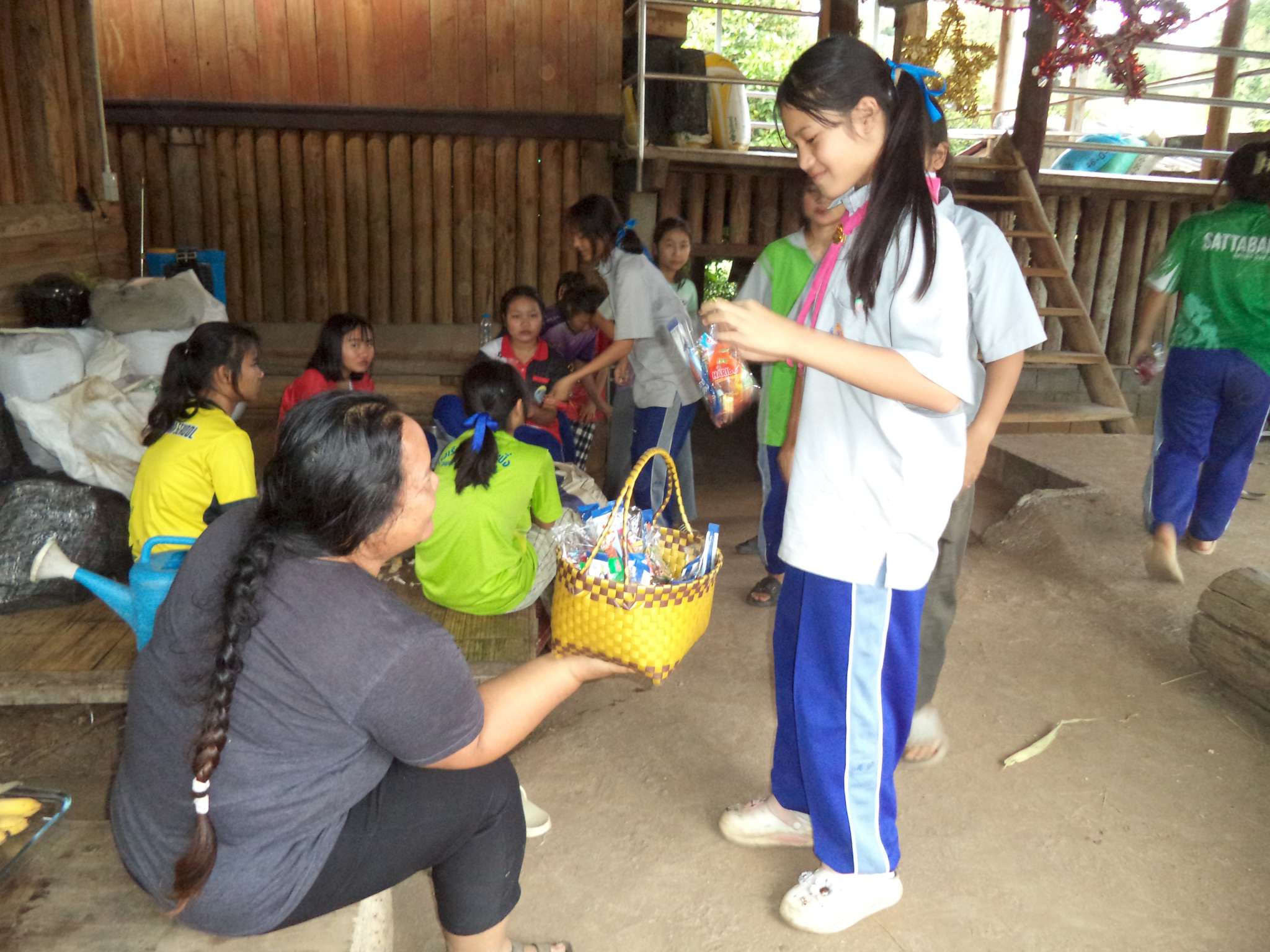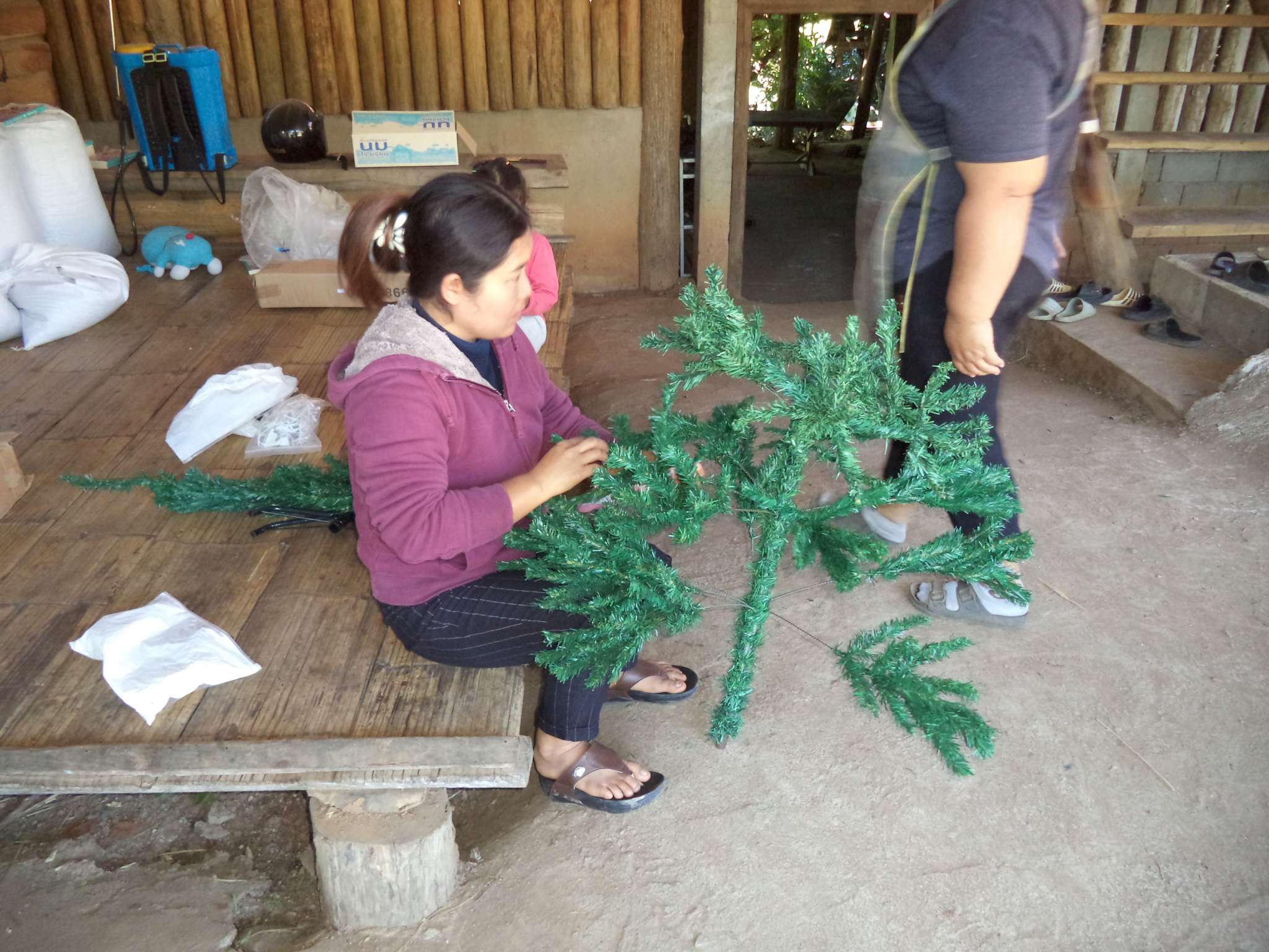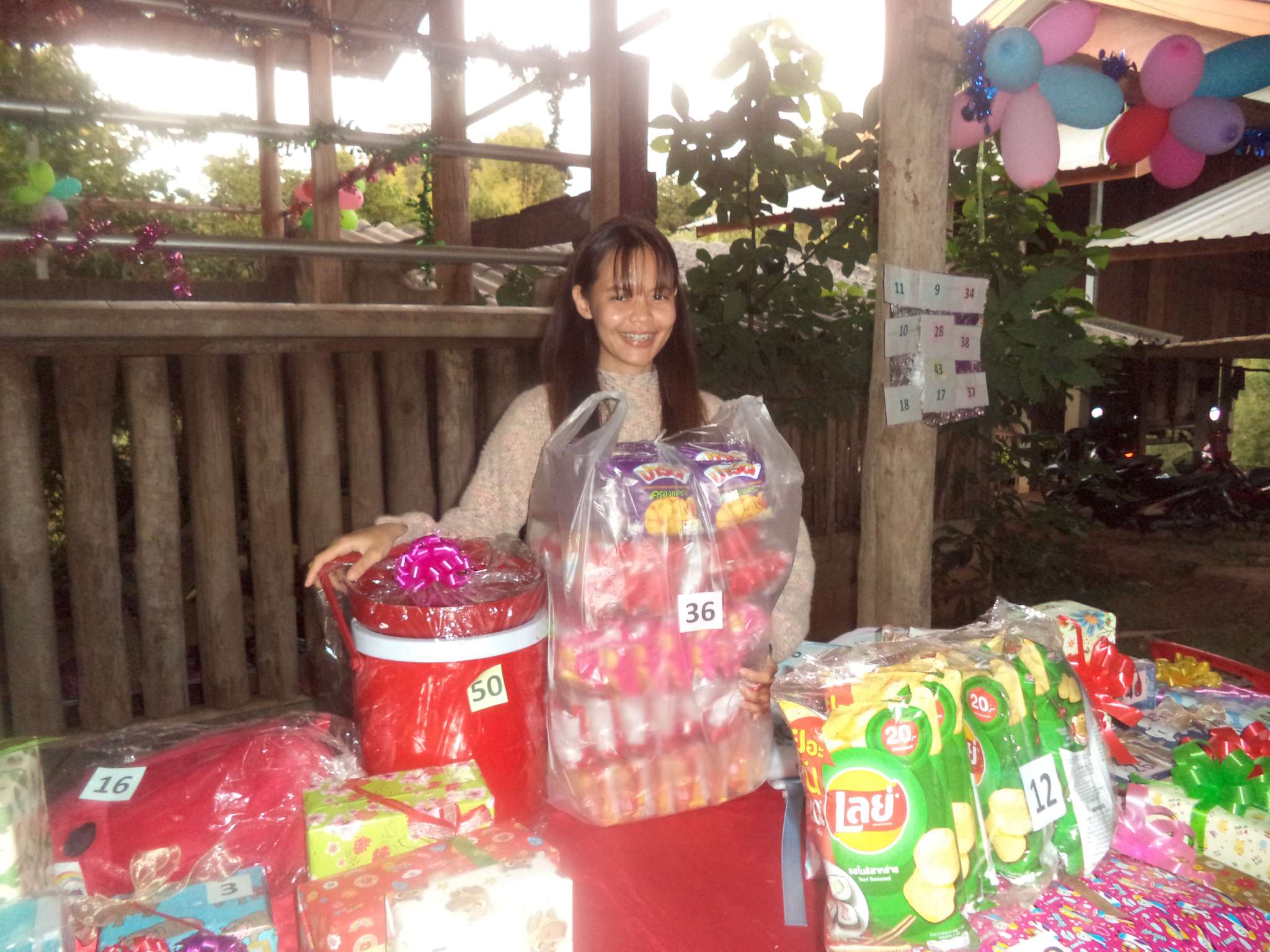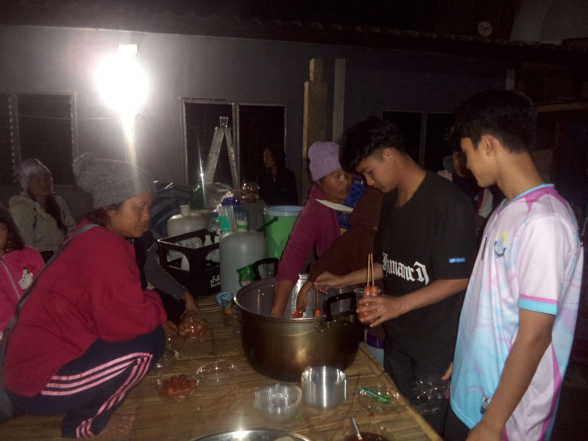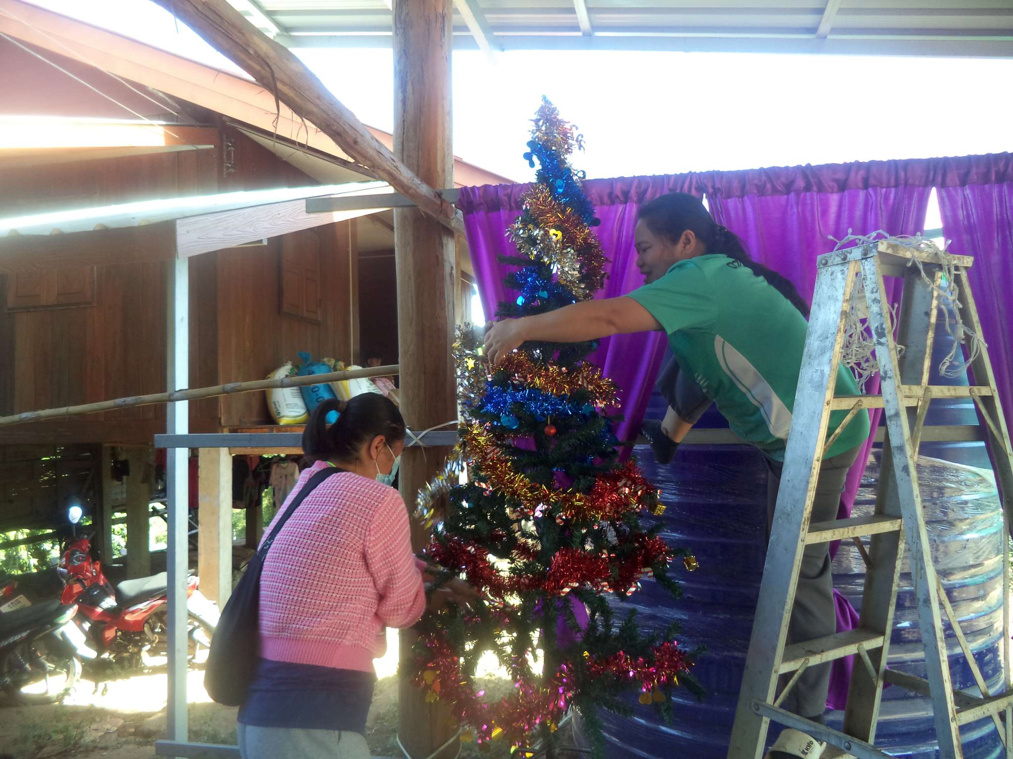 Um 18:30 Uhr begann der Weihnachtsgottesdienst mit Beiträgen der Band aus der lokalen Kirchengemeinde (bei der Prapan E-Gitarre spielt), der Kinder aus Ta Pa Bum sowie vielen weiteren Personen. Danach hielt der Pastor eine Predigt über die Weihnachtsgeschichte aus der Bibel und im Anschluss fand das große Wichteln statt, bei dem jeder eine Nummer zog, und dann das entsprechend nummerierte Geschenk erhielt. Zum Ausklingen des Abends gab es noch ein paar Snacks für alle.