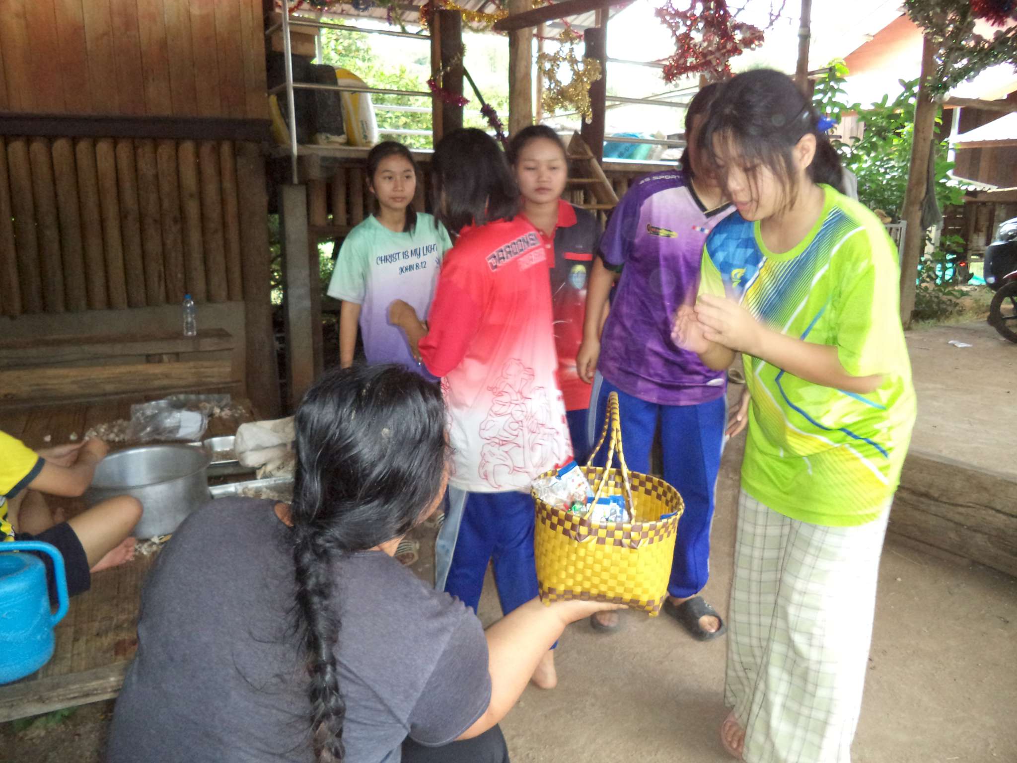 Weihnachten in Ta Pa Bum – das Highlight eines jeden Jahres für alle vor Ort – und auch dieses Jahr war es wieder so. Die jährliche Weihnachtsfeier fand am 25.12. statt. Schon Tage vorher wurde alles vorbereitet, eingekauft und dekoriert. Bereits im Vorfeld hatten sich viele Besucher angekündigt, und um gerüstet zu sein, besorgte Mietda noch ein paar neue Schüsseln und große Töpfe extra vorab.