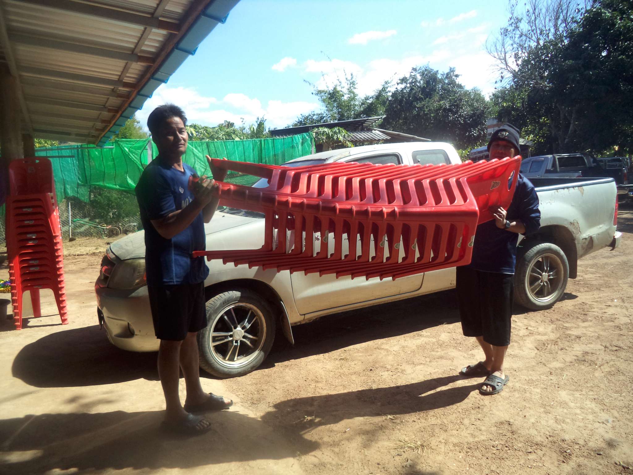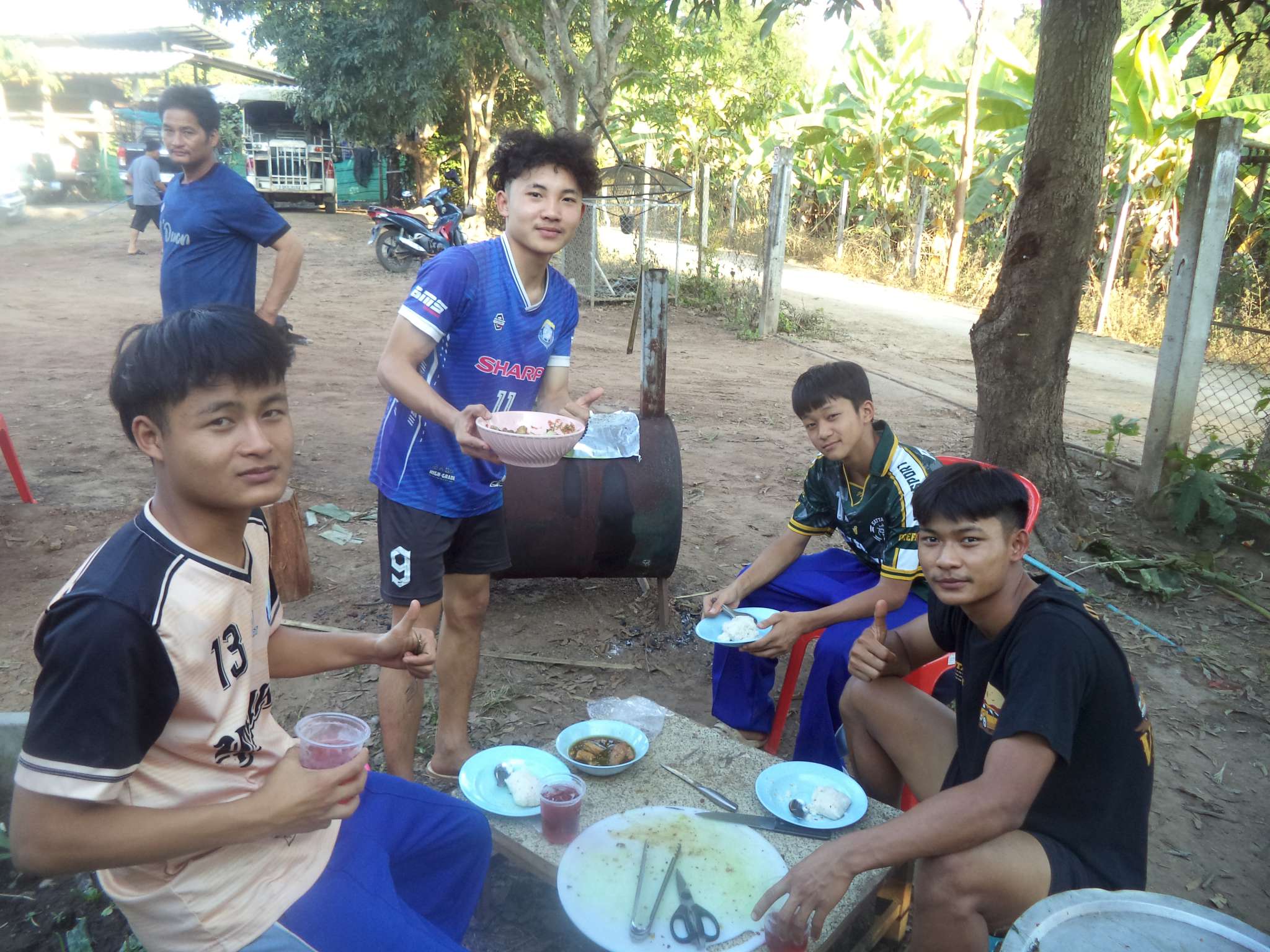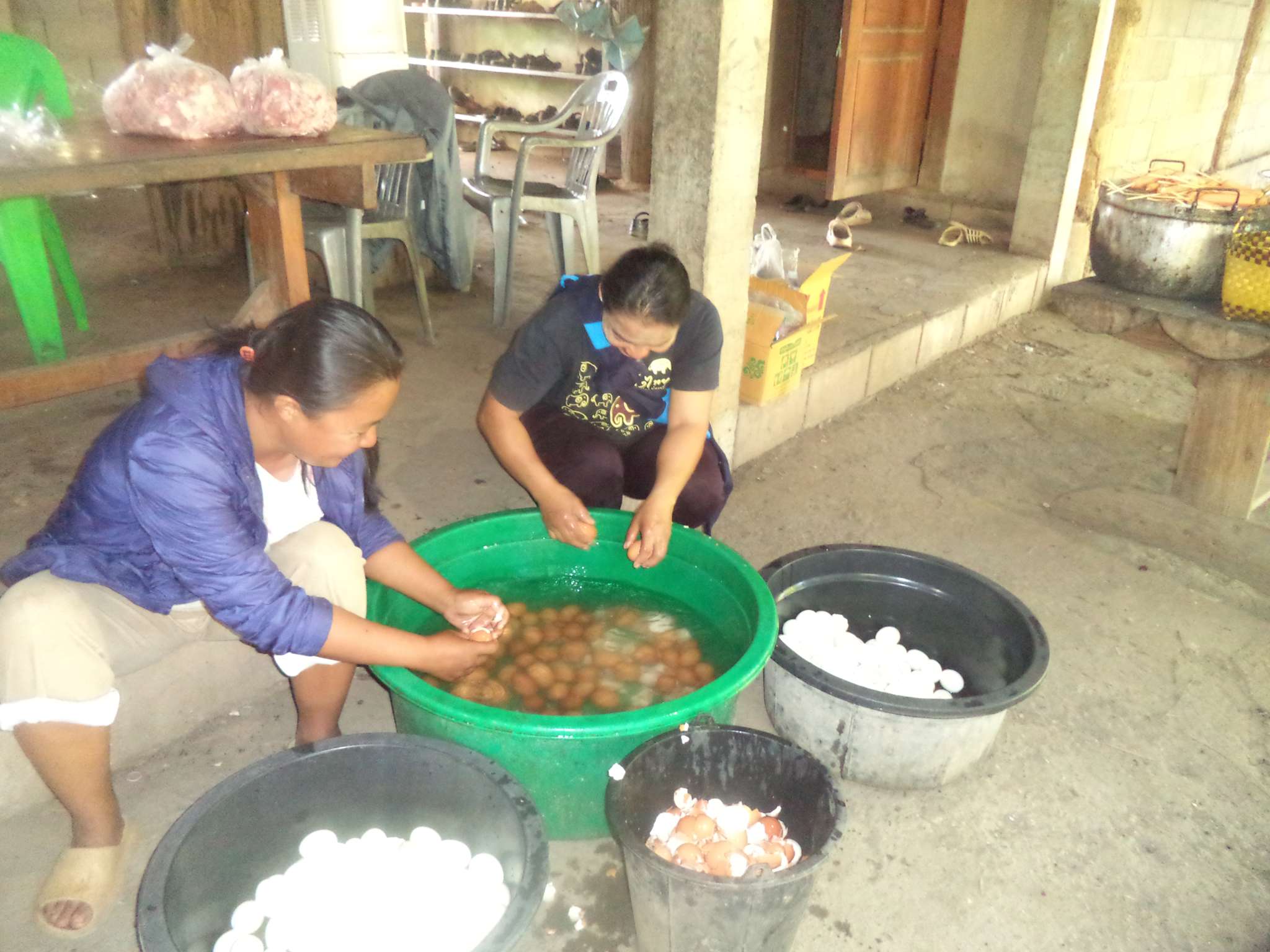 Früh morgens ging es los mit den restlichen Einkäufen, dem Säubern des neuen Carports, unter dem die Feier stattfinden sollte, und dem Kochen des Reises. Als nächstes wurden die Beilagen geschnippelt, die Grillplätze vorbereitet und das Fleisch mariniert werden. Zudem mussten 300 (!) Eier gekocht, Süßigkeiten verpackt und die finale Deko angebracht werden.