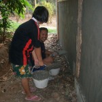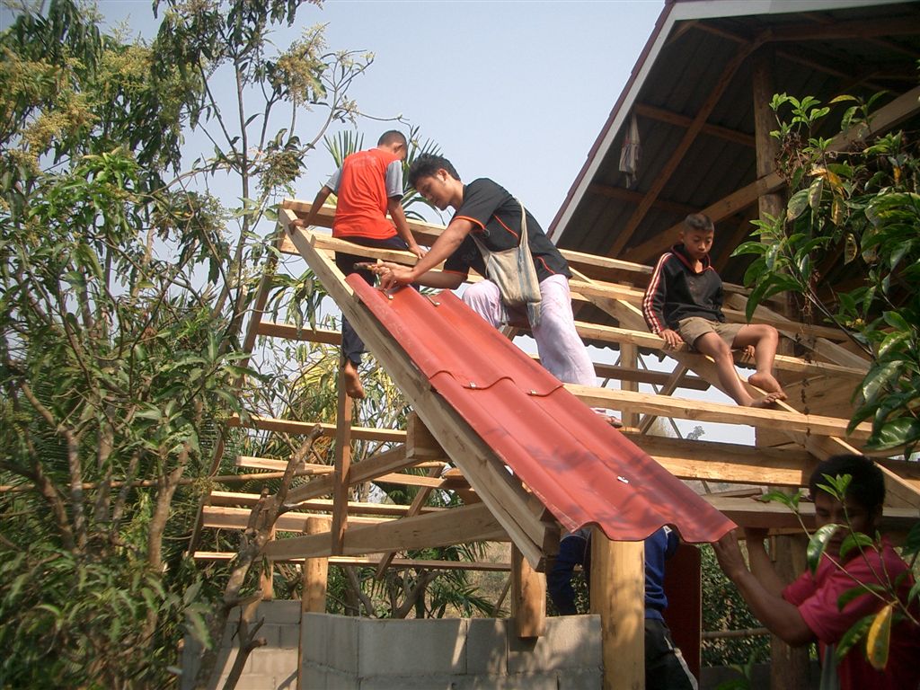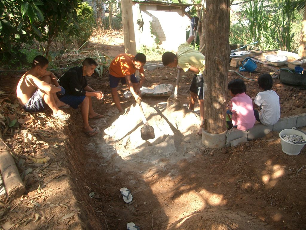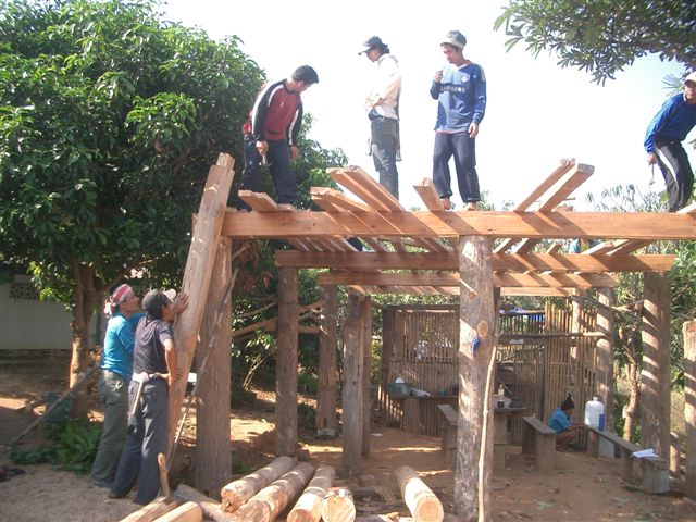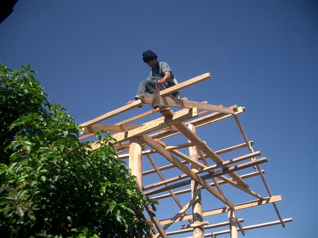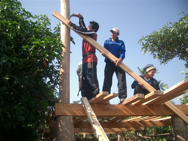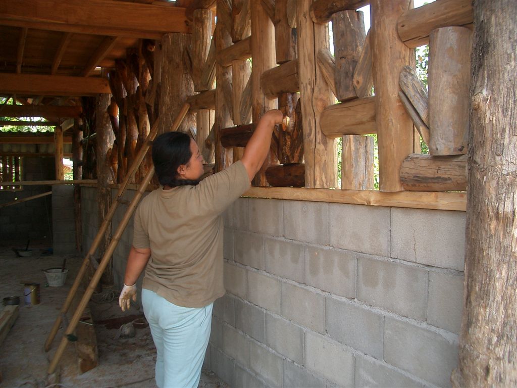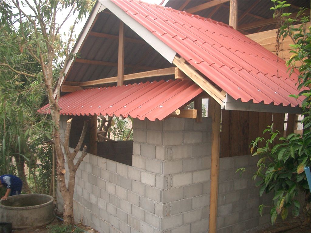 Küchen- und Schlafgebäude Fliesen für den Balkon Die neue Außenküche Neue Esstische für den überdachten Essbereich
